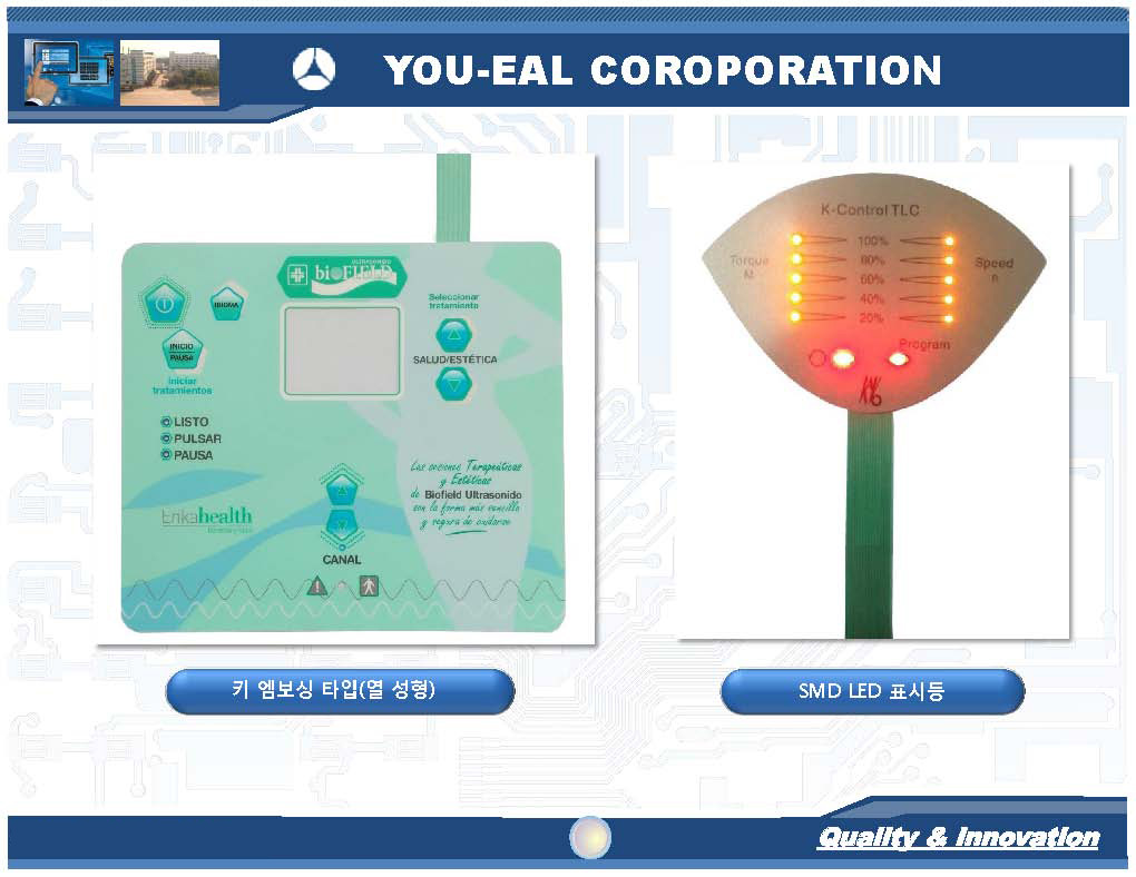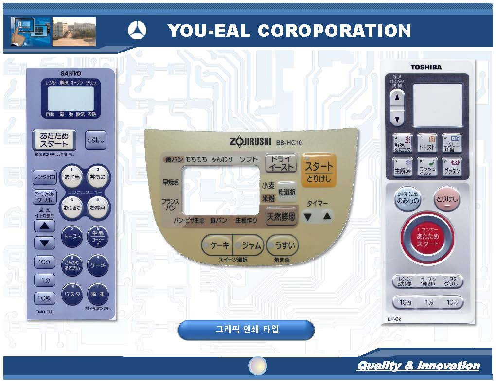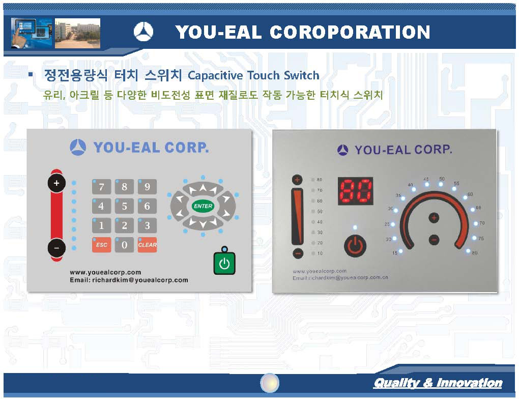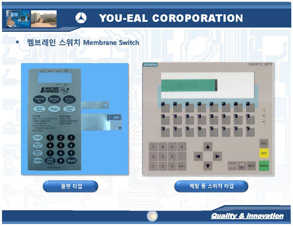 저희 유일은 1982년 창립 이래로 '품질과 혁신'을 경영이념으로 하여 멤브레인 스위치 제품군과 터치스크린 및 복합 입력 솔루션 등, 종합적인 입력 인터페이스(Man-Machine Interface-MMI)를 제공하는 기업으로 성장하고 있습니다.